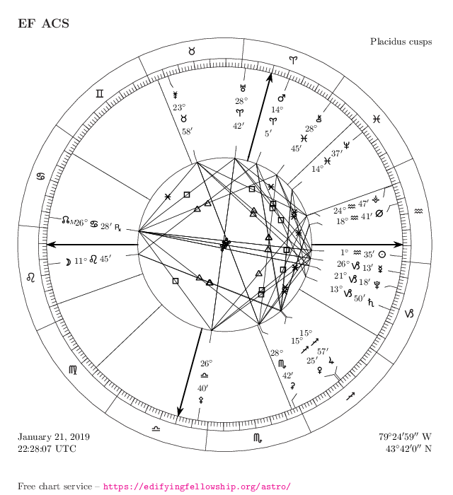 Is there a birth chart for the service itself? Although some form of this service existed for many years previously, I took the opportunity of its relaunch on edifyingfellowship.org to generate a chart for the moment I considered the new system to have "gone public," with Toronto (my current location) as the location and the default options, and the result is this image. That same image is used as the "sharing image" when you share this service on social media that supports the Open Graph extensions to HTML.